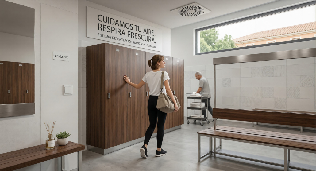 Una ventilación mecánica eficiente (y diseñada específicamente para espacios de alta carga biológica) transforma el vestuario en un espacio de bienestar. No se trata solo de cumplir normativas de RITE, sino de utilizar la calidad del aire como una herramienta de retención.